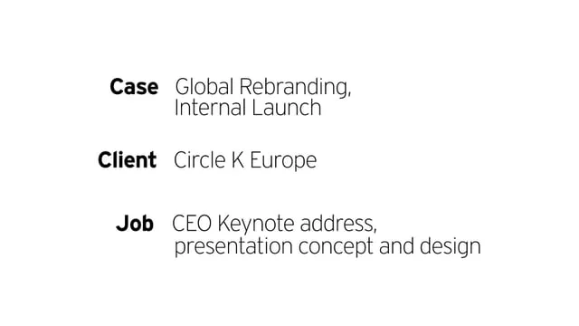 As Creative Consultant, Art Director and Head Designer, I have followed the rebranding of 2300 former Statoil fuel and convenience stations to Circle K stations across Scandinavia, Ireland and Central and Eastern Europe. My key responsibilities have been developing and designing CEO Jacob Schram and his regional executives' presentations for their annual events.